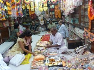Vi fortsetter videre med sykkelrickshaw gjennom det spennende basarkvarteret i nærheten. Mellom basarens boder som tilbyr alle slags fremmede frukter og duftende kryddere, ligger små, fine butikker der skreddere, barberere og håndverkere alltid er travelt opptatt.
